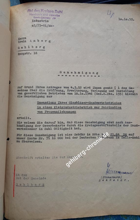 An 10. Oktober erhielt Erwin Amberg die Genehmigung zur Fabrikation von Frauenmilchpumpen.