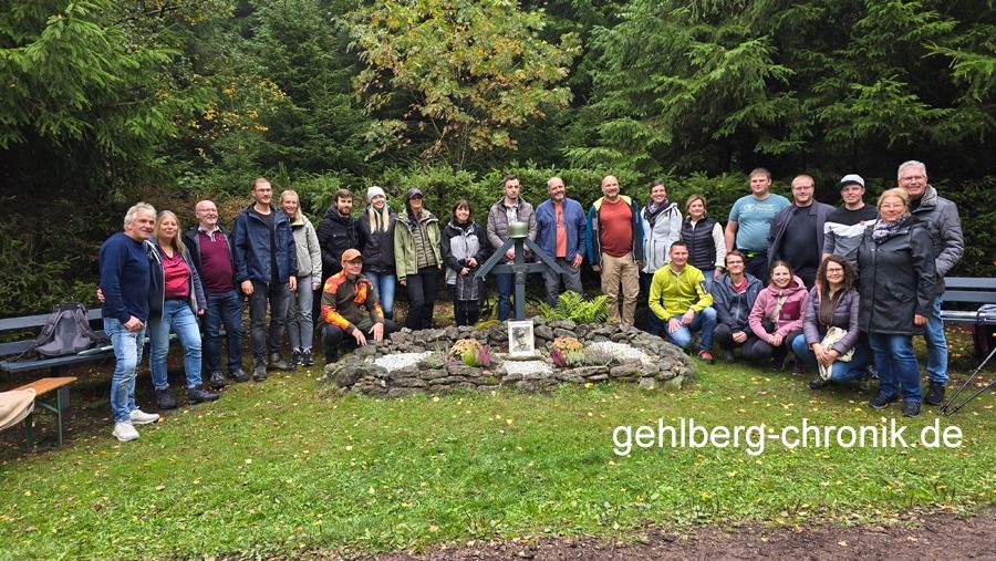 Abb. 2025-106 Soldatengrab am Bettelmannskopf. Die Neffen des Josef Huber (links und rechts außen) mit ihrem Verein.