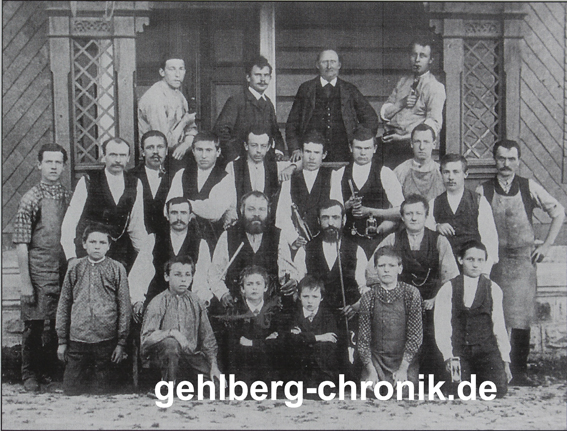 Die unmittelbare Nachbarschaft der beiden Firmen in so einem kleinen Ort, die verwandtschaftlichen Beziehungen der Arbeiter von Schilling und Gundelach untereinander und das Über-den-Zaun-Sehen der verantwortlichen Meister sowie das annähernd gleiche Produktionssortiment gaben ständig Anlass zu Reibereien Die Geheimnisse der Glaszusammensetzung veranlasste nicht selten die Firmeninhaber, noch kurz vor Beginn der Schmelze, aus der Westentasche einige "Gemenge-Zusätze"7) ohne nähere Erklärung gegenüber dem Schmelzer19) zuzusetzen. In beiden Hütten wurde das Gemenge selbst bereitet. Diese Arbeit erfolgte peinlich genau hinter verschlossenen Türen im Kastenmischer. Die Abwerbung guter Facharbeiter, sowohl Glasmacher, -bläser, -Schleifer oder anderer Berufe, geschah ständig. Oft war 1/2 Pfennig Differenz im Stundenlohn Grund genug, den Betrieb zu wechseln. Nicht selten verursachten Streitigkeiten mit Arbeitskollegen, den Nachbarn oder der Geschäftsleitung den Wechsel. Nicht zuletzt spielten verwandtschaftliche Beziehungen, Heirat oder ähnliches eine Rolle. Die ständigen Konkurrenzkämpfe im Großen wie auch im Kleinen waren nicht immer zum Nachteil für die Firmen. Um die Kunden zufrieden zu stellen, waren Qualität und Termintreue oberstes Gebot, die Weiterentwicklung der Technologie permanent gefragt. Sie machte auch um Gehlberg keinen Bogen. Die Firmen hatten einen hohen Bekanntheitsgrad beim Kundenkreis. Sie beteiligten sich an Messen und Ausstellungen im In- und Ausland. Das Produktionssortiment umfasste technische Gläser und Wirtschaftsglas, das bisher die Gehlberger Erzeugnispalette angeführt hatte (die gesamten Veredlungsstrecken, wie Kugler und Maler, bestanden nicht mehr).