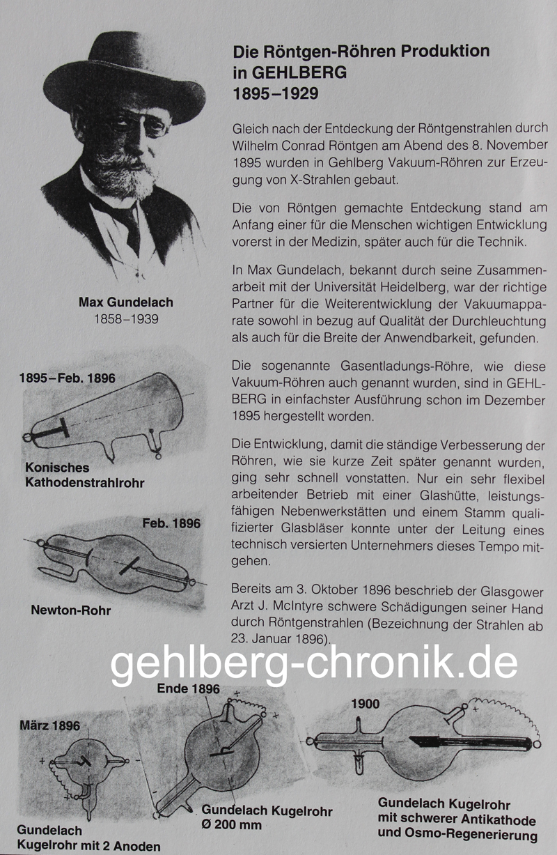 hatte einen hohen Stand erreicht. Außerdem entwickelte Max GundeIach eine Regeneriervorrichtung neben der sog. "Osmo-Regenerierung" und dem "Bauerschen Luftventil", die "Gundelach-Regenerierung" (D. R G. M. Nr. 346585). Die Regenerierung der Röntgenröhren machte sich auf Grund einer während des Gebrauches entstandenen "Selbstevakuierung" erforderlich. Für die hohe Zuverlässigkeit und Qualität der Röntgenröhren erhielt Gundelach 1904 auf der Weltausstellung in St. Louis einen "Grand Prix".