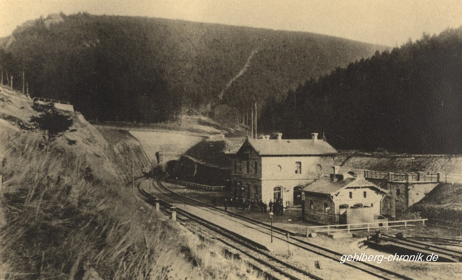 Die Bahnlinie wurde nicht gleich in ihrer ganzen Länge eröffnet. Der Tunnel war noch nicht fertig, da rollten 1882 schon Züge von Ritschenhausen nach Suhl. Dies war Veranlassung, den schon zu Beginn des Bahnbaues begonnenen Kampf um eine Haltestelle in Gehlberg wieder aufzunehmen. Zunächst hatte nämlich die Königl. Preußische Eisenbahnverwaltung auf beiden Seiten des Tunnels je einen Bahnhof errichten lassen wollen, war aber später wieder davon abgekommen. Sie plante nur noch einen Bahnhof für Oberhof. Die Eingaben der Gehlberger und der Gothaer Regierung beantwortete sie mit dem Vorwand, dass die Strecke bei Gehlberg für die Anlage eines Bahnhofes zu steil sei. Nach langen Verhandlungen überführte sie sich selbst der Lüge, indem sie dem Bau einer Weichenanlage zum Abhängen einzelner Waggons zustimmte. Nach 1882 nahm das Gothaer Ministerium die Verhandlungen mit Berlin wieder auf. Sowohl der Landtagsabgeordnete Polack als auch der Gothaer Staatsminister v. Seebach setzten sich für die Errichtung eines Bahnhofs in Gehlberg ein, um die Industrie des Ortes zu erhalten und den Abtransport der Hölzer der herzoglichen Domäne zu gewährleisten. Berlin lehnte jedoch ab und behauptete erneut, dass sich eine Haltestelle für fahrplanmäßige Züge überhaupt nicht einrichten ließe.