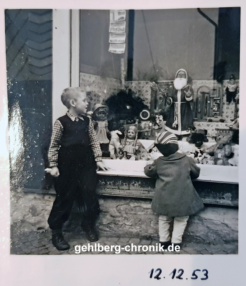 Das Schaufenster von Seidenstrickers Laden war in der Vorweihnachtszeit unwiderstehlich für Kinder. Inmitten von Spielzeug stand der Weihnachtsmann mit erhobenen linken Zeigefinger. In der rechten Hand drohte er mit einer Rute und nickte zudem mit dem Kopf.