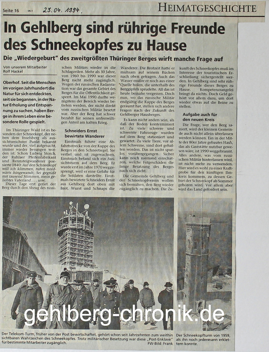 3) Freies Wort . 23.04.1994 . In Gehlberg sind rührige Freunde des Schneekopfs zu Hause