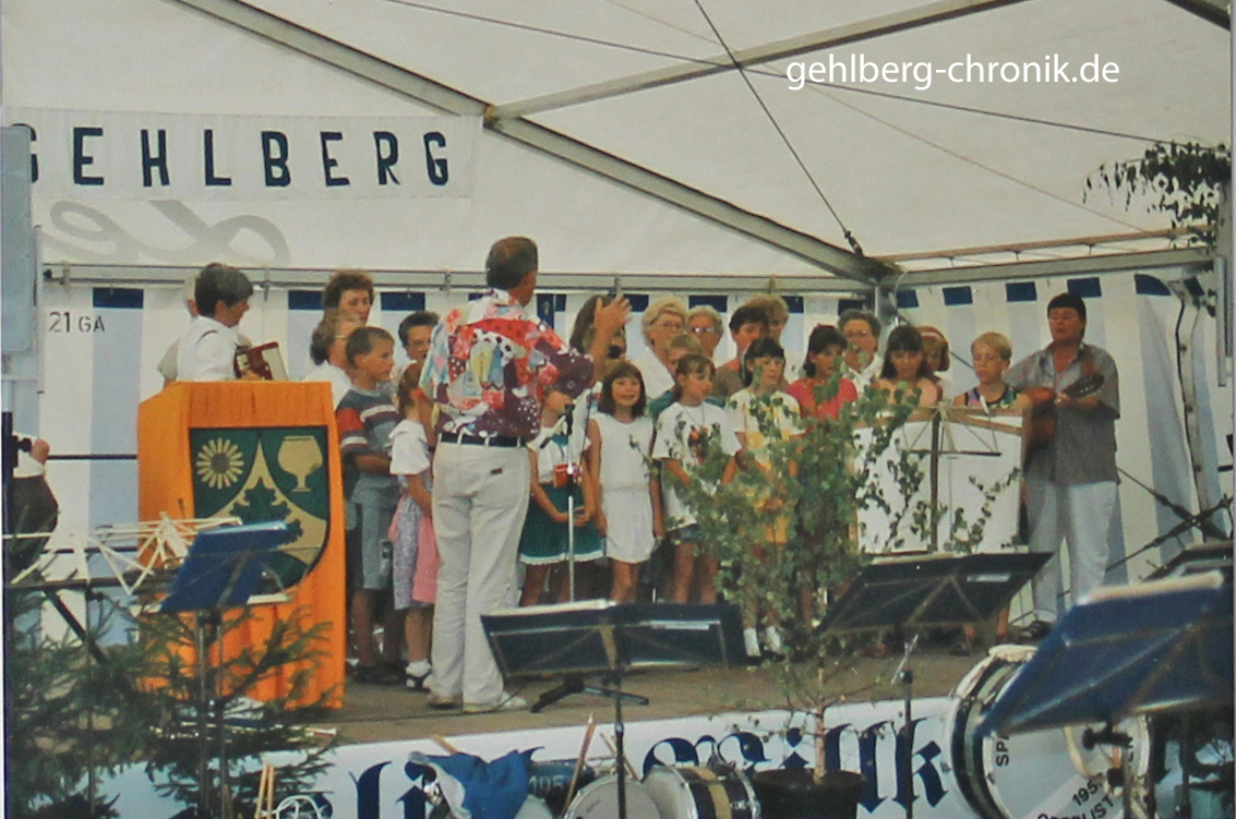 Abb. 1995-021Das „Gehlberg-Lied“, eingeübt unter Leitung von Pfarrer Keil und Ehefrau, wird gesungen. |